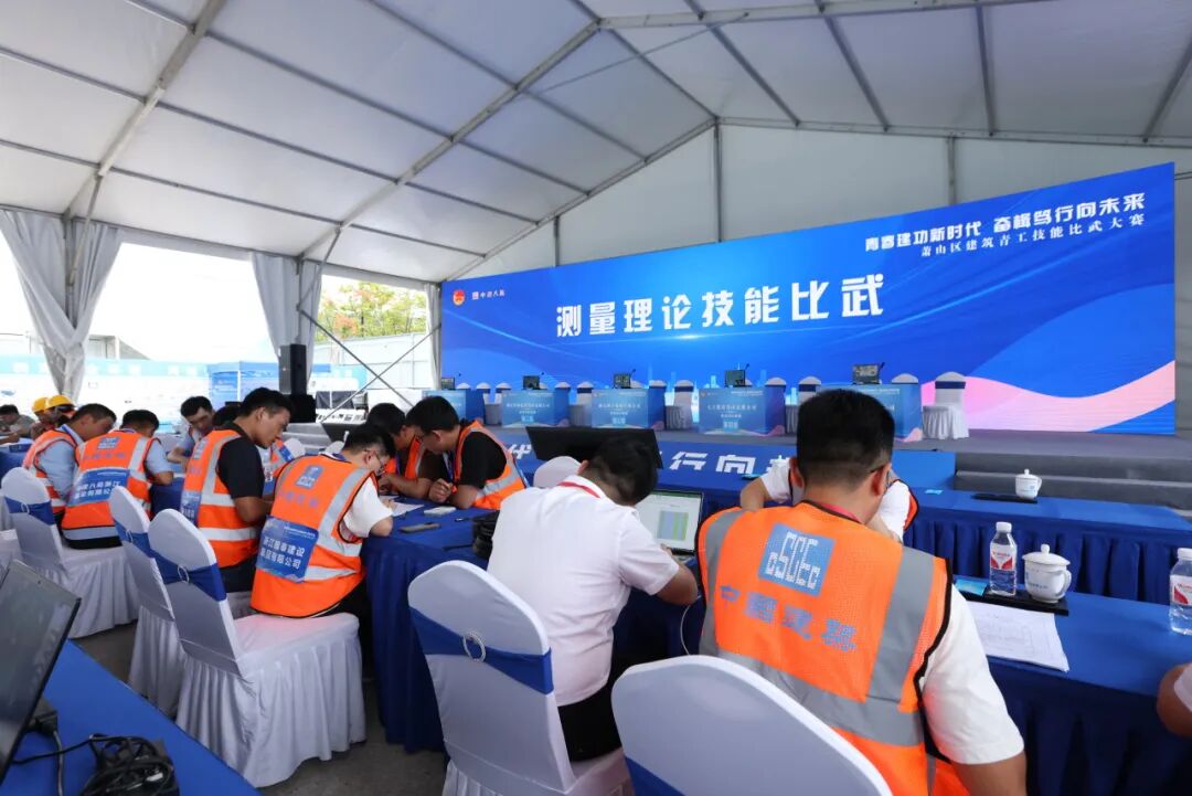 钢筋模架理论技能比武和测量理论考试在主会场先后展开,参赛选手们奋笔疾书,从现行规范及标准、常见案例分析以及计算与应用等方面作答,展现了扎实的知识储备和高超的理论素养。